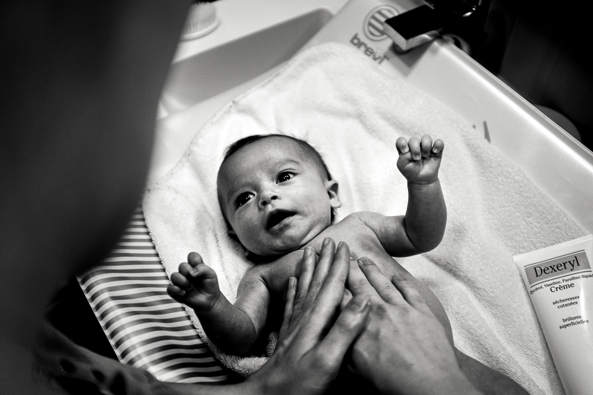 Heureusement, la maman de Louise a suivi des cours de massage et assure donc une sortie de bain plus sereine, crème à l’appui.